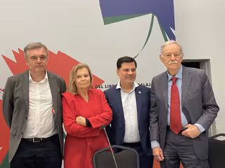 El periodista Xavi Ayén, la escritora Carme Riera, José Calafell (Planeta) y el escritor Eduardo Mendoza, en una homenaje a Carmen Balcells en la FIL de Guadalajara - EUROPA PRESS