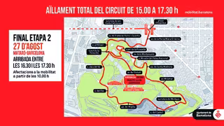 Esta etapa empezará en Mataró (Barcelona) a las 12.45 horas y terminará en Barcelona ciudad: los ciclistas entrarán desde L'Hospitalet de Llobregat por la Gran Via y harán la subida de Montjuc hasta terminar en el Estadi Olímpic Lluís Companys, en una llegada prevista entre las 16.30 y las 17.30 horas, de manera que los cortes se harán a partir de las 15 horas.
