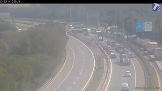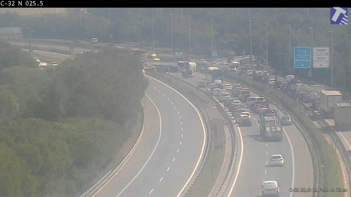 Imagen de la C-32 donde ha volcado un camión - TRÀNSIT