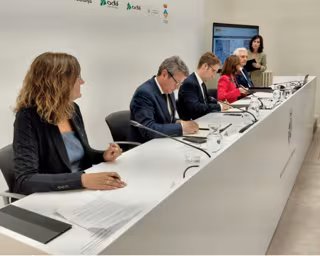 La consellera de Territorio, Vivienda y Transición Ecológica de la Generalitat, Sílvia Paneque, y el secretario de Estado de Transportes y Movilidad Sostenible, José Antonio Santano, han firmado el protocolo para impulsar la variante ferroviaria de Figueres (Girona) y la remodelación de la estación Figueres-Vilafant.