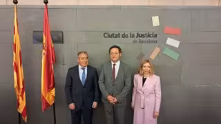 El fiscal superior de Catalunya, Francisco Bañeres; el fiscal general del Estado, Álvaro García Ortiz; y la fiscal jefa de Barcelona, Neus Pujal. - EUROPA PRESS
