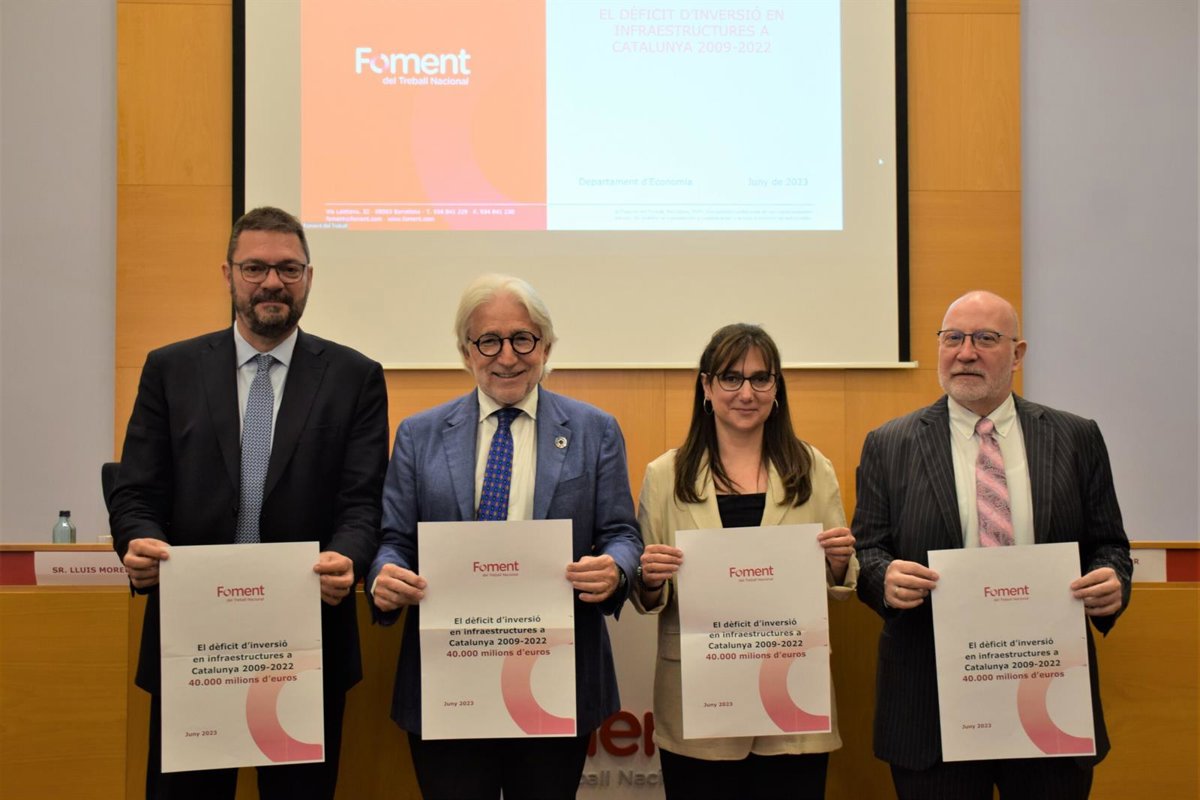 (I-D) El Presidente De La Cámara De Contratistas, Lluís Moreno; El Presidente De Foment Del Trebal, Josep Sánchez Llibre; La Presidenta De La Comisión De Infraestructuras, Anna Cornadó, Y El Secretario General Adjunto, Salvador Guillermo. - FOMENT DEL TREBALL