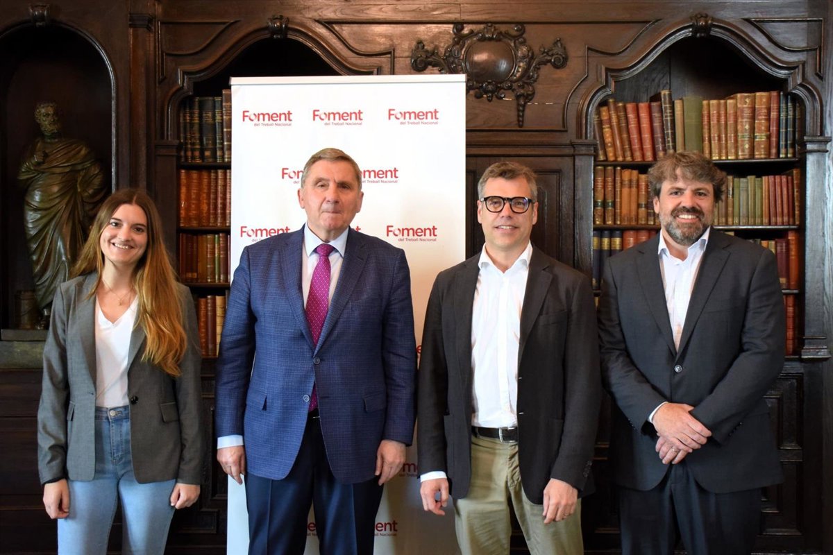 El secretario general de Foment del Treball, David Tornos; el ceo de PymeLegal, Jaume Feliu; el responsable de Socios de la patronal, Xavier Nolis, y la responsable de Comunicación, Alba Serrano. - FOMENT DEL TREBALL