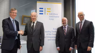 El presidente de MicroBank, José Francisco de Conrado, y el director ejecutivo del Fondo Europeo de Inversiones (FEI), Richard Pelly, han suscrito este jueves ampliar el acuerdo de colaboración mediante el cual el FEI destina 150 millones de euros para que MicroBank los conceda en forma microcréditos durante este año.
