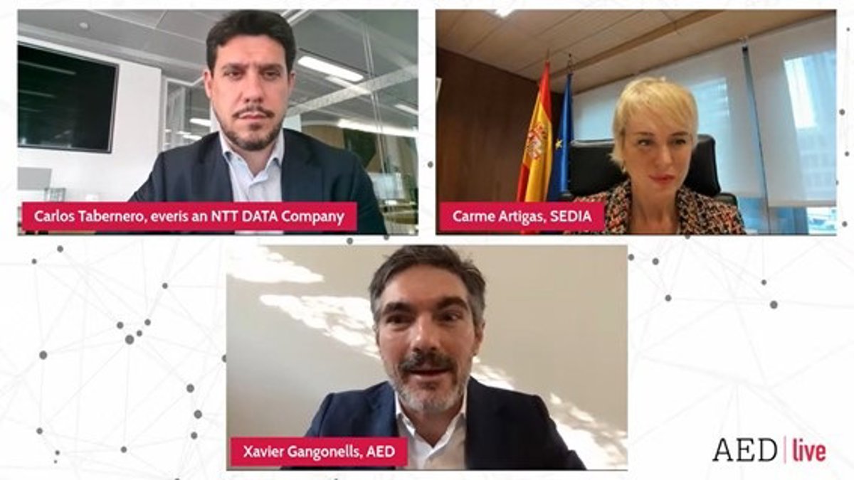 El socio de Sector Público en everis, Carlos Tabernero, la secretaria de Estado de Digitalización e Inteligencia Artificial, Carme Artigas y el director general de la AED, Xavier Gangonells - AED