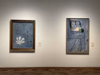 Exposición 'MiróMatisse. Más allá de las imágenes' en la Fundació Miró, con la obra 'El guante blanco' de Miró y 'Vista de Notre-Dame' de Matisse - EUROPA PRESS