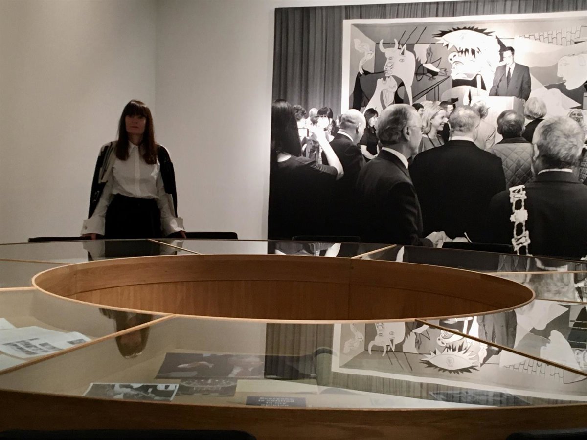 La artista polaca Goshka Macuga frente a su instalación La naturaleza de la bestia - EUROPA PRESS
