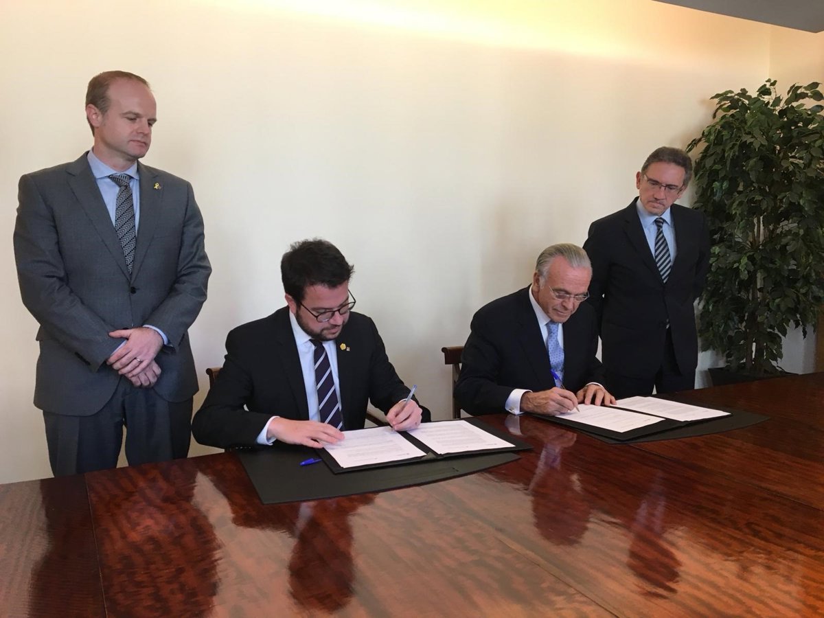 En la firma, Aragonès y Fainé estaban acompañados por el secretario general de la Vicepresidencia y de Economía y Hacienda de la Generalitat, Albert Castellanos, y del director general de la Fundación Bancaria La Caixa, Jaume Giró.
