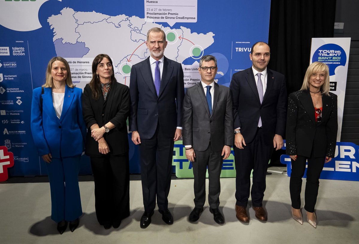 El Rey junto al ministro de Presidencia, Relaciones con las Cortes y Memoria Democrática, Félix Bolaños; los consellers Albert Dalmau, Mònica Martínez Bravo y Núria Montserrat; y la delegada del Gobierno en Barcelona, Pilar Díaz, en un acto el martes - FUNDACIÓN PRINCESA DE GIRONA