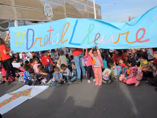 En el acto, que ha contado con la presencia de la Síndica de Greuges para la infancia, María Jesús Larios, y el secretario general de Juventud de la Generalitat, Toni Reig, se han levantado pancartas para reivindicar el derecho de los niños a "jugar en la calle", entre otros lemas, pero también para recordar las víctimas infantiles de conflictos políticos internacionales, como Siria.