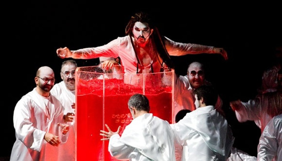 Mientras las orquesta y el coro interpretan la cantata, tres solistas se enfrentarán a la sensación de cantar sumergidos en el agua y elevados por una grúa a siete metros de altura.