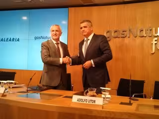 El director general de Negocios Minoristas de Energía de Gas Natural Fenosa, Daniel López, y el presidente de Baleària, Adolfo Utor, han formalizado el acuerdo, y han destacado en rueda de prensa que es un proyecto pionero en España y en el sur de Europa.