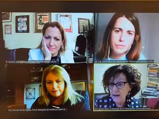 La presidenta del Cicac Maria Eugnia Gay, la abogada Sonia Ricondo, la fiscal delegada de violencia sobre la mujer Flor de Torres y la presidenta de la comisión de mujeres abogadas del Icab Teresa Blasi. El 24 de noviembre de 2020 - ZOOM