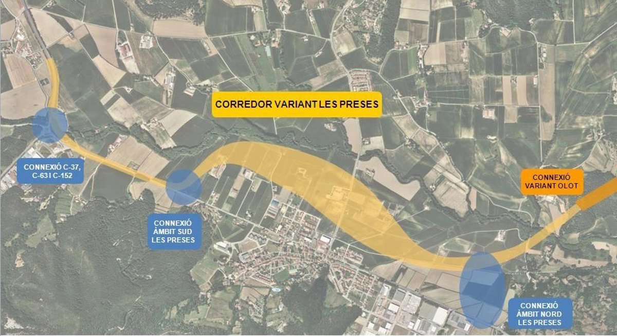 La Generalitat y los ayuntamientos de Olot, Les Preses y la Vall d'en Bas han acordado las líneas básicas para impulsar un nuevo estudio informativo que concrete el trazado de la variante de Les Presses, que conectará la variante de Olot, dentro del eje viario de la C-37 Bracons-Olot.
