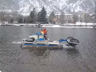 Endesa cuenta con una máquina anfibia polivalente que permite cortar y extraer la planta foránea, además de remover el fondo, para estudiar los componentes de ésta.