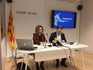 La consellera de Empresa y Conocimiento de la Generalitat, ngels Chacón, y el consejero delegado de Acció, Joan Romero - EUROPA PRESS