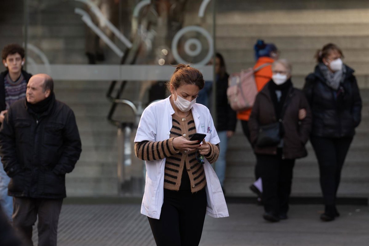 Varias personas con mascarillas, en el Hospital Clínic de Barcelona, a 8 de enero de 2024, en Barcelona, Catalunya (España) - David Zorrakino - Europa Press