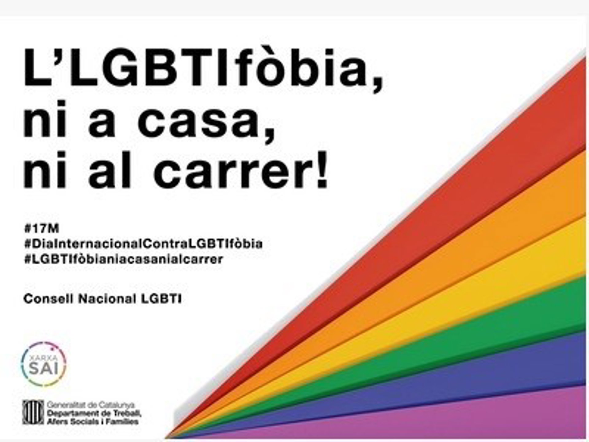 El Consell Nacional LGTBI de la Generalitat ha impulsado este sábado la campaña 'La LGTBIfobia, ni en casa ni en la calle' en las redes sociales con motivo del Día Internacional contra la LGTBI-fobia, una iniciativa que invoca la necesidad de no fomentar estas actitudes en las familias ni en espacios públicos, laborales o educativos, ha informado el Govern en un comunicado.