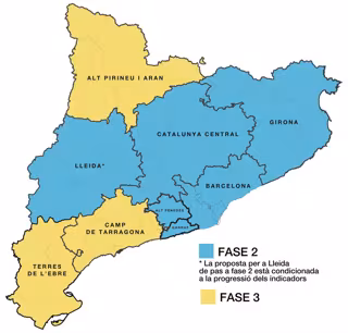 También ha planteado que el Camp de Tarragona, Terres de l'Ebre (Tarragona) y Alt Pirineu i Aran (Lleida) pasen a la Fase 3 también el próximo lunes, según un comunicado del Govern.
