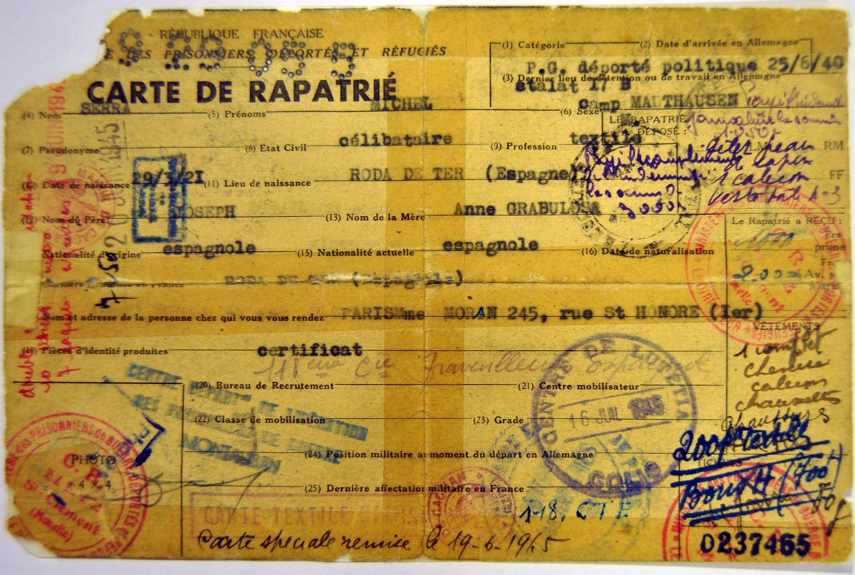 El censo se ha publicado este martes coincidiendo con la conmemoración del 75 aniversario de la liberación de Mathausen, el 5 de mayo de 1945, y recoge tanto el paso de los deportados por los campos de concentración y exterminio como su trayectoria anterior.