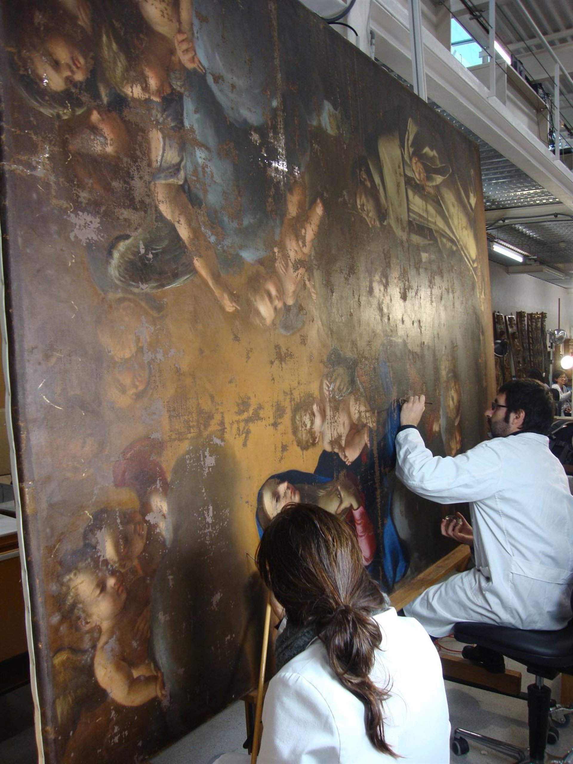 Las tareas de restauración ha consistido en la fijación de la capa pictórica en peligro de desprendimiento, la consolidación del soporte, la limpieza de la superficie pictórica, el nivelado de las lagunas, la reintegración pictórica y la aplicación de una capa de barniz.