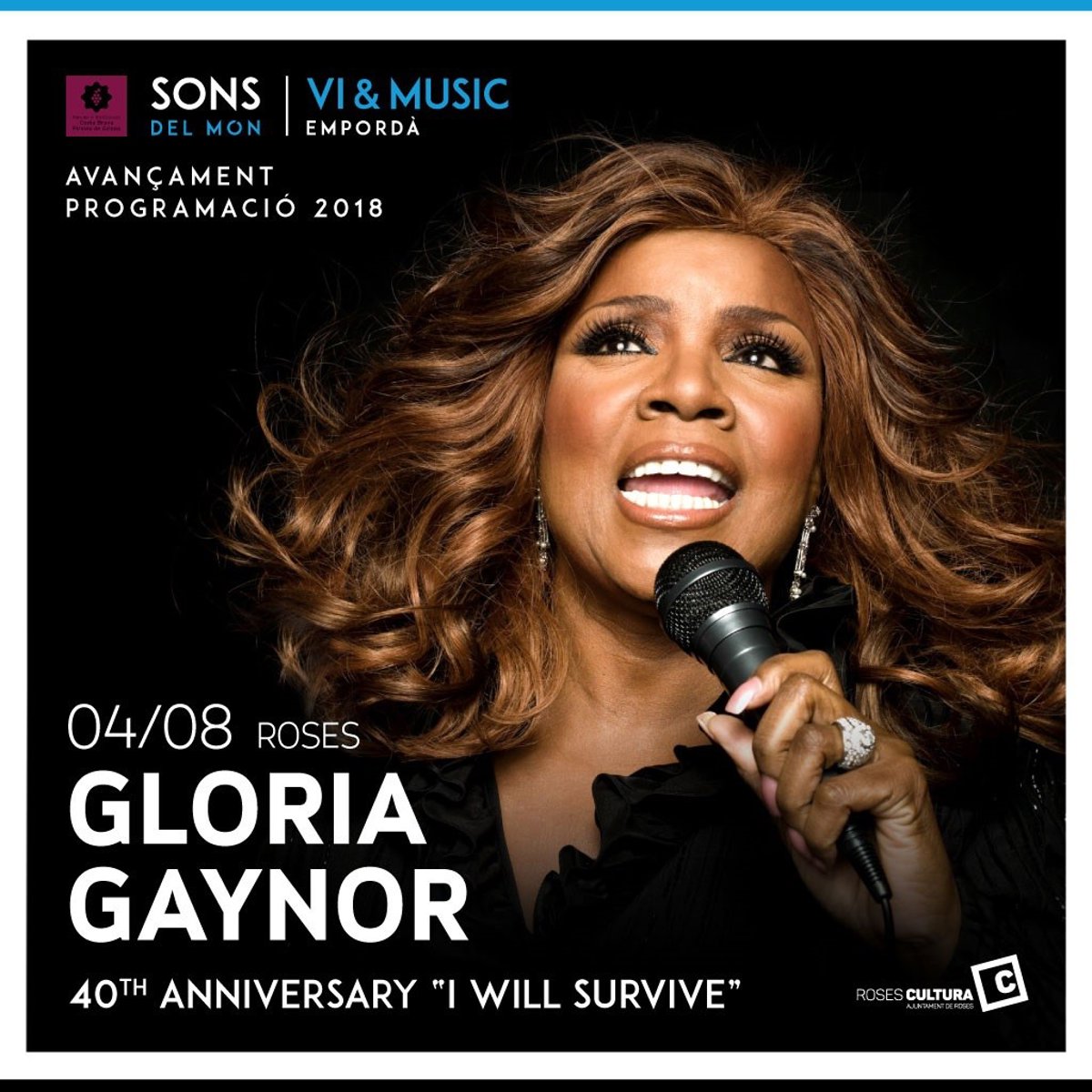 La cantante estadounidense Gloria Gaynor celebrará los 40 años de la canción 'I Will Survive' en un concierto en el Festival Sons del Món Vi & Music de Roses (Girona) el 4 de agosto.