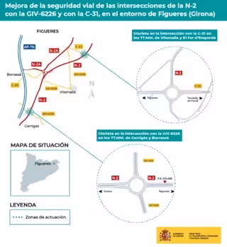 El Ministerio de Transportes, Movilidad y Agenda Urbana ha licitado por 1,77 millones de euros el contrato de obras para mejorar la seguridad vial en dos intersecciones en la N-2 en el entorno de Figueres (Girona).