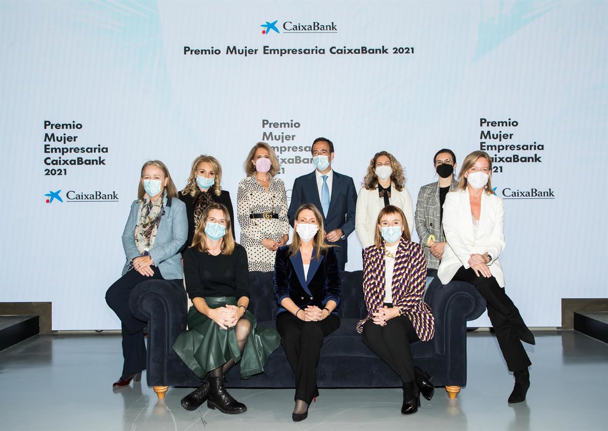 Gonzalo Gortázar con las ganadoras del 'Premio Mujer Empresaria CaixaBank' 2021 - MAXIMO GARCIA DE LA PAZ