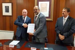 El conseller de Interior de la Generalitat, Miquel Buch, y el síndic de Aran, Carlos Barrera, han oficializado este miércoles un acuerdo sobre procedimientos de colaboración en el traspaso de la gestión de los servicios de emergencias y protección civil en el ámbito de la prevención, extinción de incendios y salvamentos y rescates de montaña.