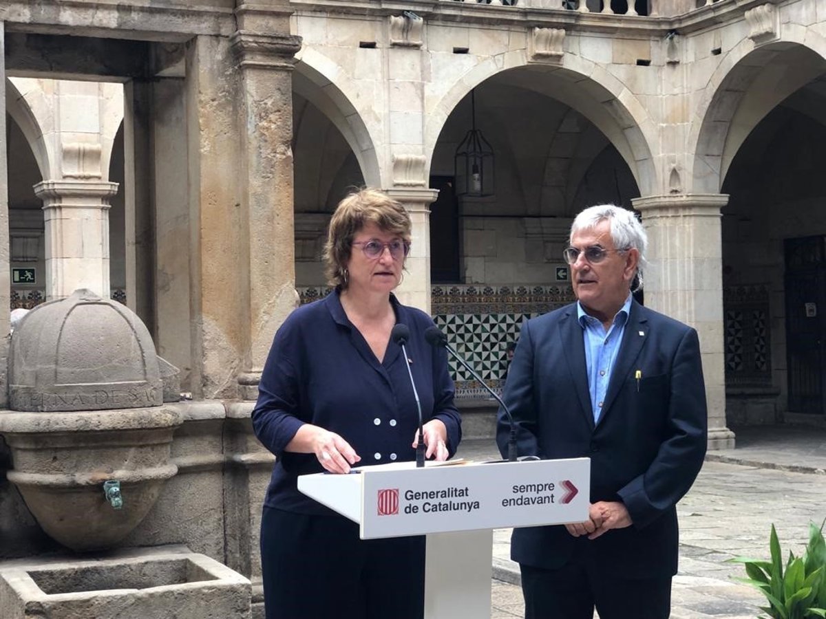 La consellera de Educación de la Generalitat, Anna Simó, y el presidente del Consell Escolar de Catalunya, Jesús Vinyes, atienden a los medios este 19 de octubre en el Institut d'Estudis Catalans (IEC) en Barcelona - EUROPA PRESS