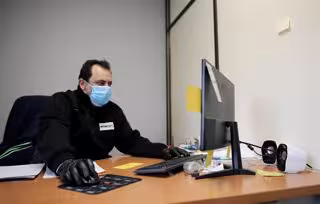 Un operario protegido con una mascarilla y guantes trabaja desde el ordenador, en Madrid (España), a 14 de abril de 2020. - Eduardo Parra - Europa Press
