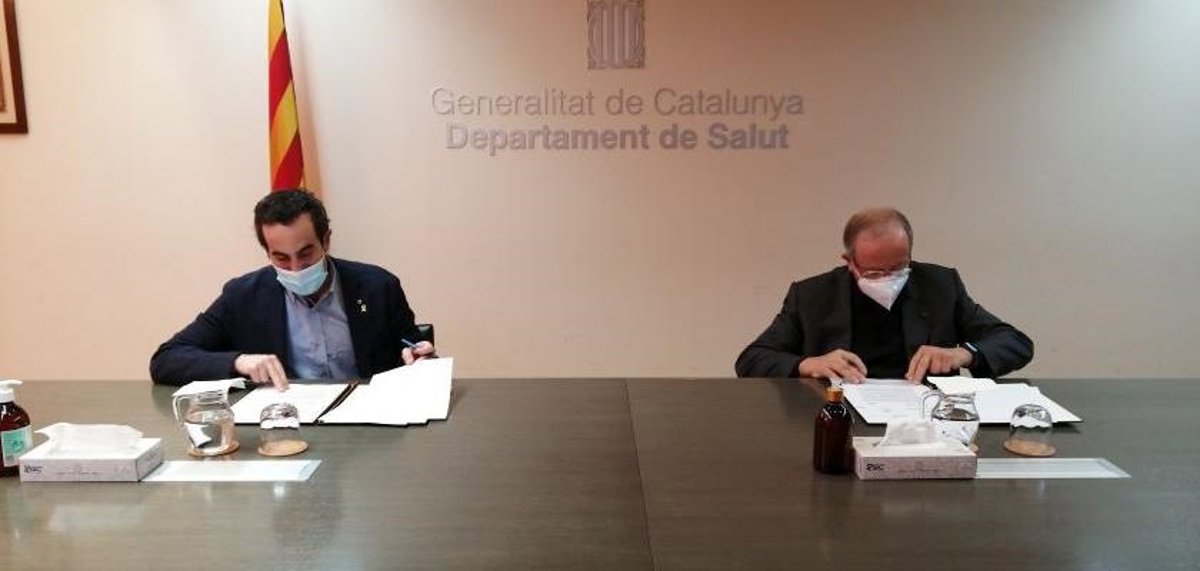 El convenio de colaboración se firmó este jueves por parte del secretario genera de Salud, Marco Ramentol, y el presidente en funciones de Pimec, Josep González.