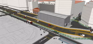La nave se levantará dentro de la zona que ya está delimitada por las obras, a cinco metros de la fachada sur de la calle, y llegará hasta unos 15 metros de altura, lo que sería una cuarta o quinta planta de un edificio, según han explicado fuentes de la Generalitat.