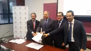 Han rubricado el convenio el conseller de Interior, Jordi Jané; el rector de la UdL, Roberto Fernández, y el director general de Telefónica en Catalunya, Kim Faura, y también ha asistido a la firma el director del CAT112, Federic Adan.