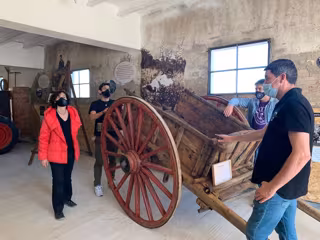 La antigua cuadra, que hace las funciones de espacio de acogida, es un edificio donde a mediados de los años 50 se ordeñaban las vacas a mano, y que se ha museizado.