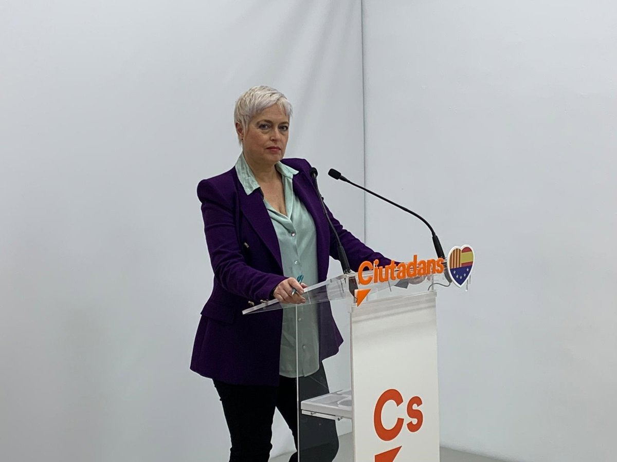 Anna Grau en rueda de prensa este lunes en la sede de Cs de Barcelona. - CS