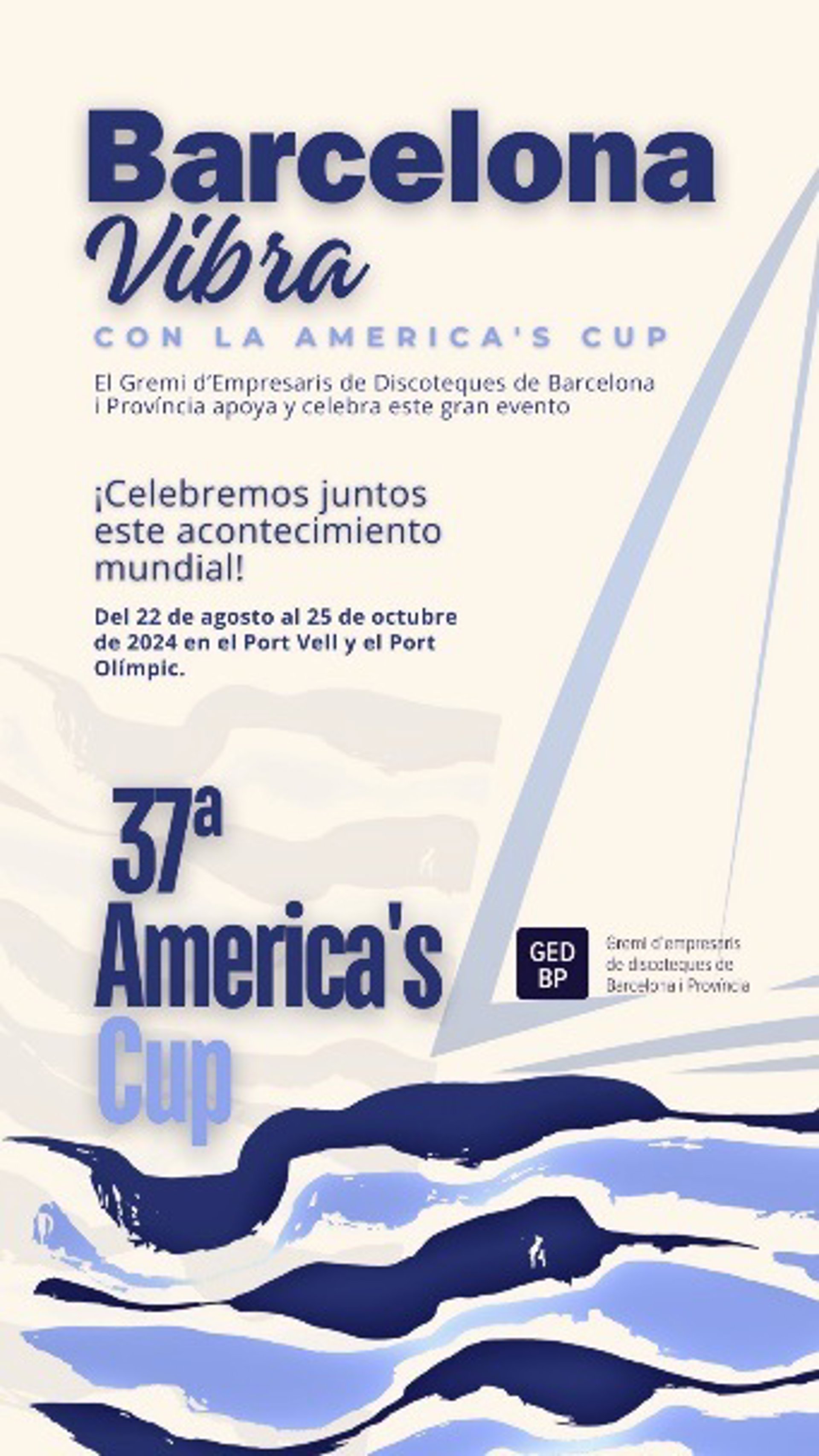 El Gremi de Discoteques da visibilidad y proyección a la competición mediante cartelería informativa dirigida a los locales bajo el lema 'Barcelona Vibra con la America's Cup'.