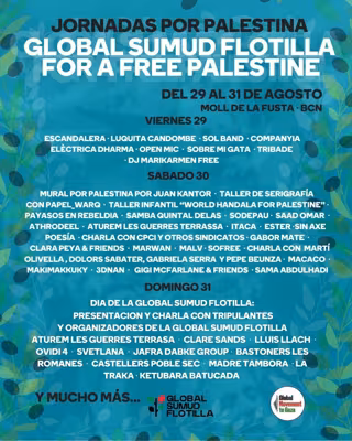 Jornadas culturales antes de la salida de la Global Sumud Flotilla en el Moll de la Fusta de Barcerlona - GLOBAL SUMUD FLOTILLA