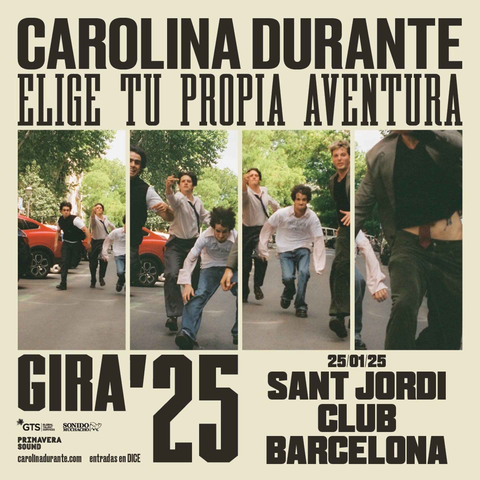 La banda de rock indie Carolina Durante actuará en el Sant Jordi Club de Barcelona el 25 de enero de 2025 en el marco de su gira de invierno para presentar su tercer álbum, 'Elige tu propia aventura'.