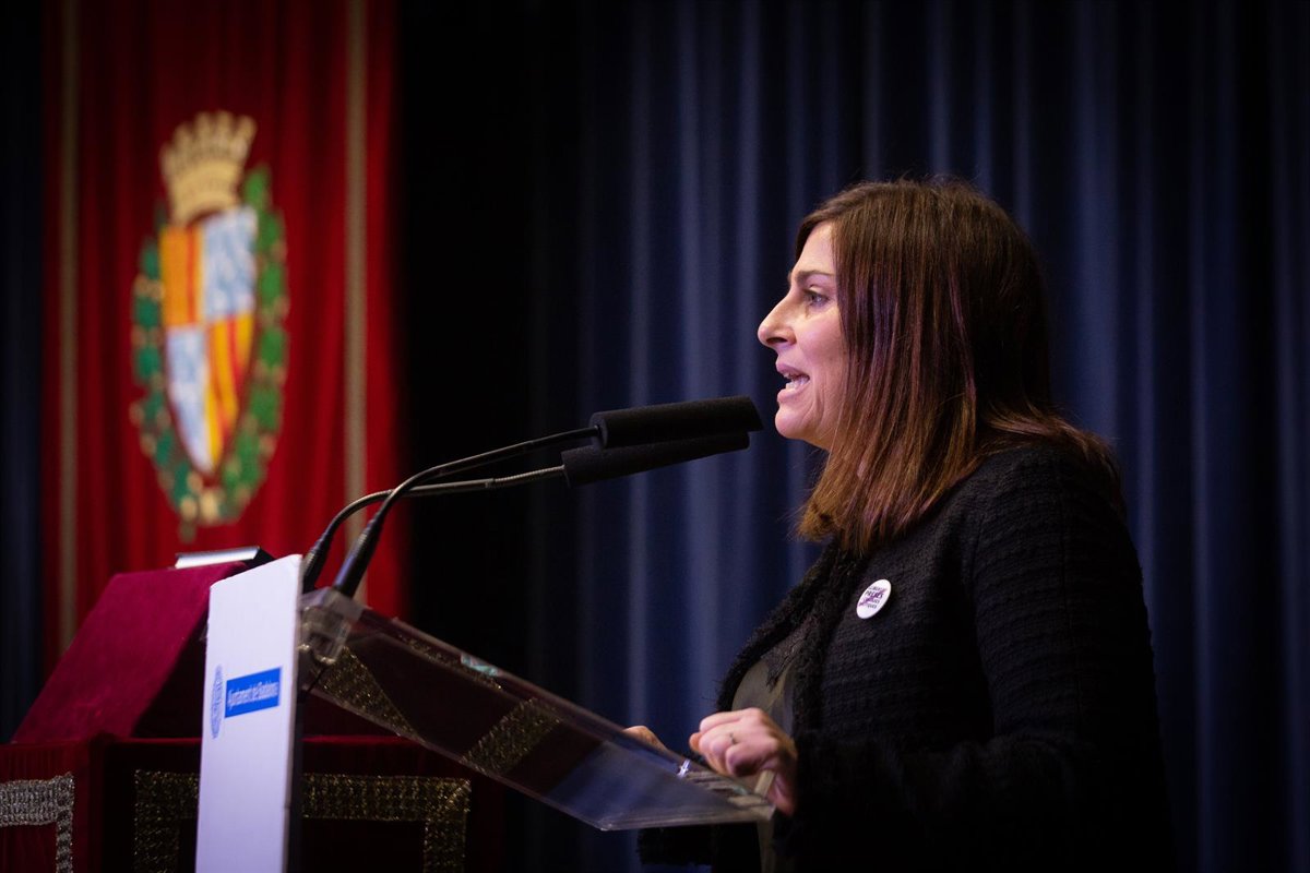 La concejal de Guanyem Badalona, Nora San Sebastián, durante la moción al hasta ahora alcalde de Badalona (Barcelona), Xavier García Albiol (PP). - DAVID ZORRAKINO - EUROPA PRESS