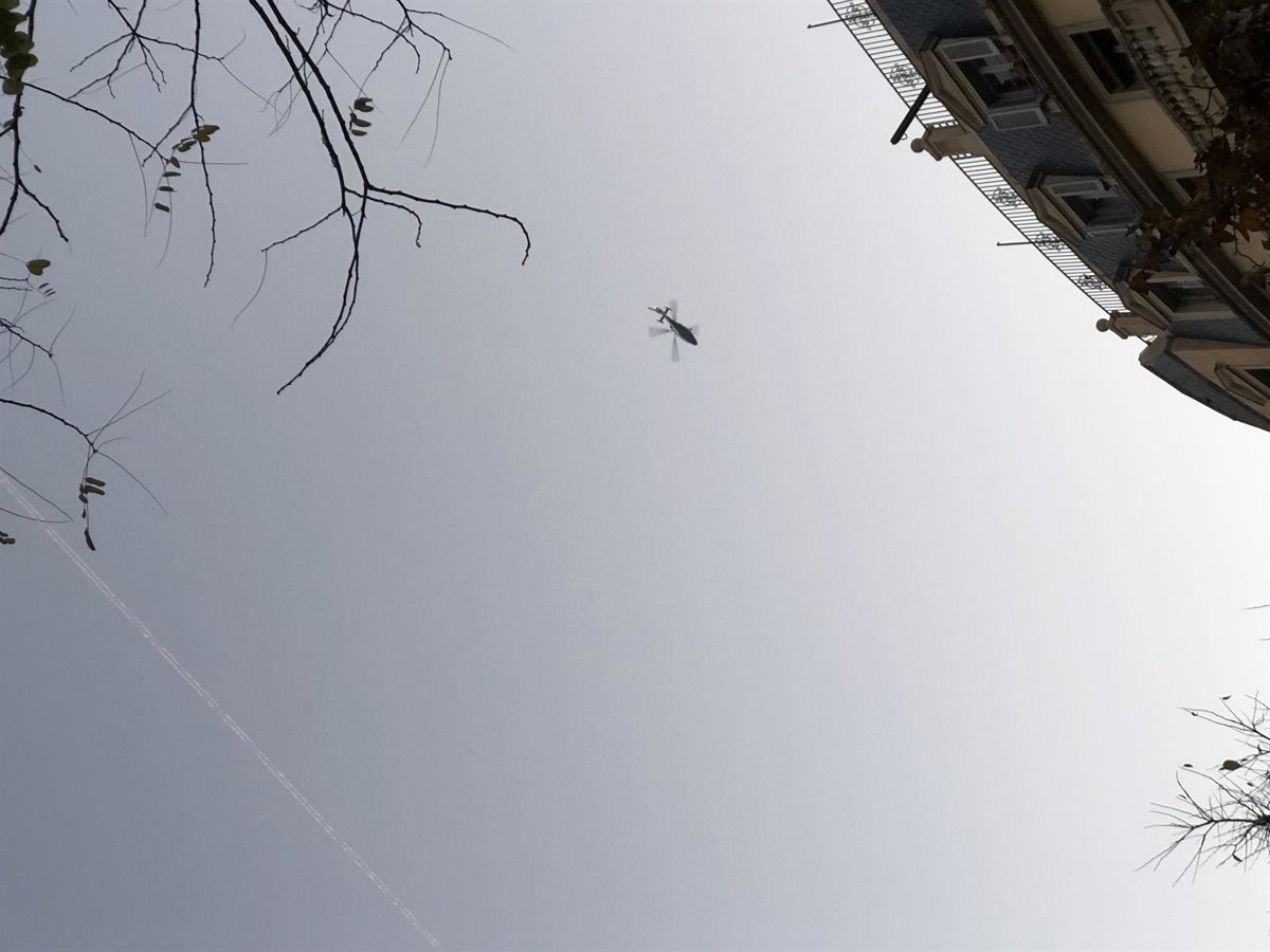 El sonido del helicóptero se ha podido escuchar desde primera hora de la mañana en varios puntos de Barcelona, como el distrito del Eixample.