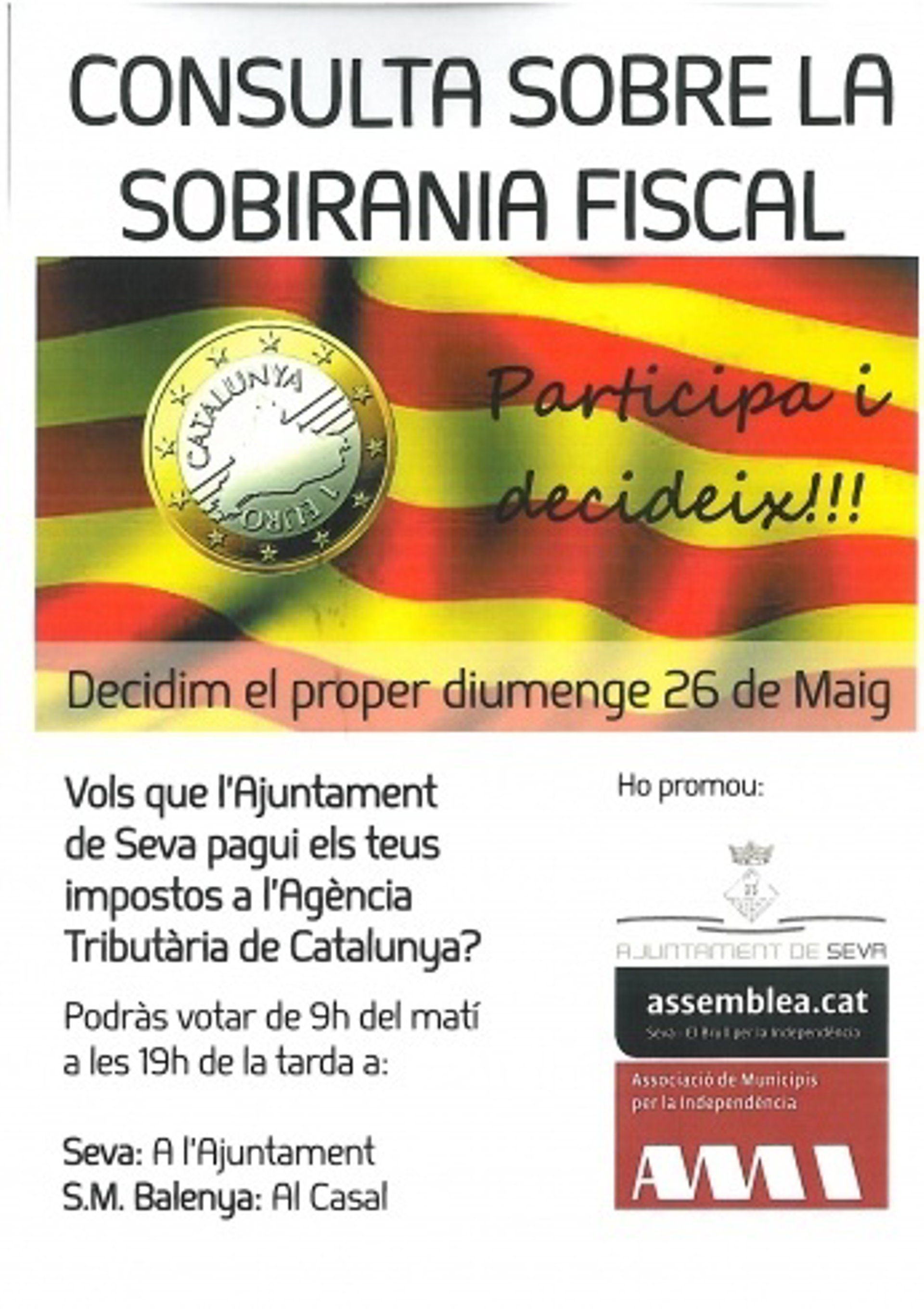 Los vecinos del pueblo barcelonés de Seva han aprobado este domingo en una consulta que el Ayuntamiento pague a la Agencia Tributaria de Catalunya sus impuestos municipales --IRPF, IVA, el de Sociedades y los especiales-- en vez de abonarlos a las arcas del Estado.
