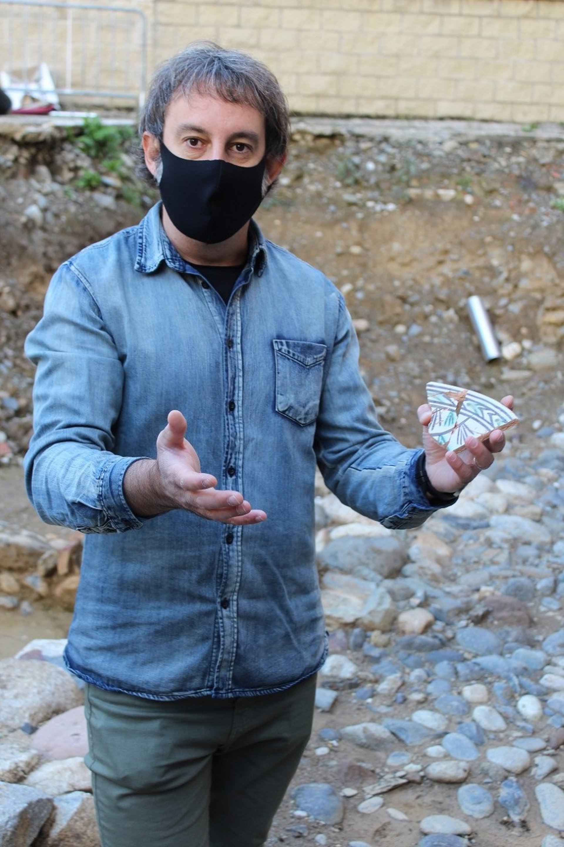 El arqueólogo scar Augé con restos encontrados en la Seu d'Urgell. - AYUNTAMIENTO DE LA SEU D'URGELL