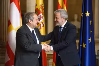 El ministro de Industria y Turismo, Jordi Hereu (i), y el alcalde de Barcelona, Jaume Collboni (d), se saludan a su llegada a una reunión en el Ayuntamiento de Barcelona. - Alberto Paredes - Europa Press
