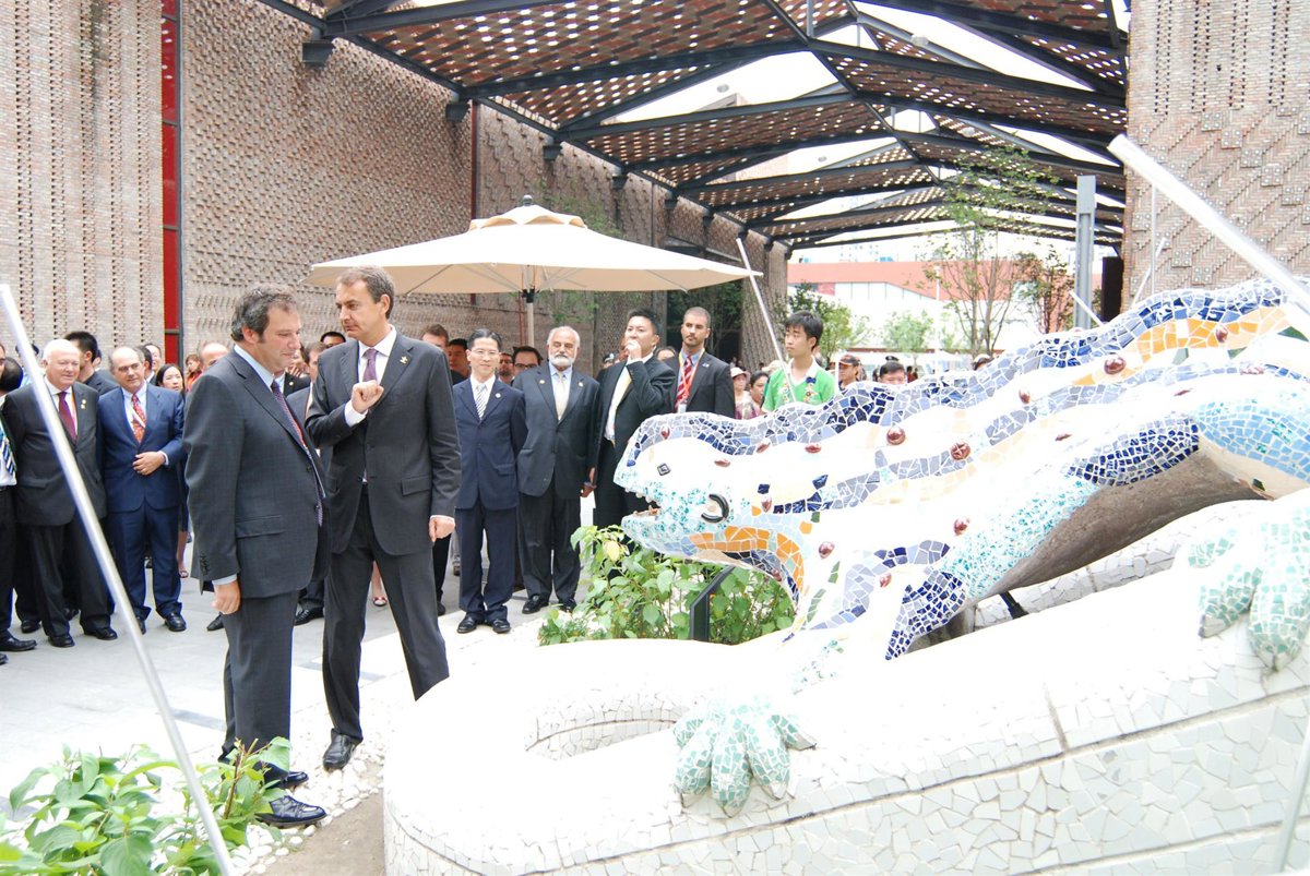 El alcalde de Barcelona, Jordi Hereu, y el presidente del Gobierno, José Luis Rodríguez Zapatero, han visitado el pabellón de la capital catalana en la Expo Universal de Shanghai 2010, en una comitiva también con el ministro de Exteriores, Miguel Ángel Moratinos.
