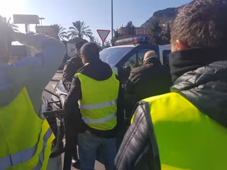 Un vez dentro del Puerto, la Guardia Civil ha formado otro cordón más adelante, y manifestantes han vuelto a cruzarlo tras unos momentos de tensión.