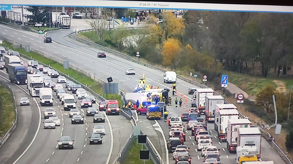 Según han explicado fuentes del Servei Catal de Trnsit (Sct) a Europa Press, el accidente provoca entre dos y tres kilómetros de retenciones en ambos sentidos de la marcha y "costará retirar" el camión volcado.