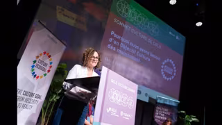 También ha destacado que la cultura es "motor económico y una herramienta de transformación social" y que un objetivo propio de cultura serviría para preservar lo que ve a menudo en peligro, como las lenguas minoritarias, las tradiciones y el patrimonio amenazado por el cambio climático y la globalización.