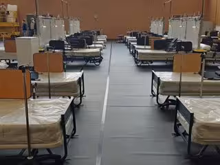 El pabellón polideportivo que el Institut Guttmann ha cedido al Hospital Germans Trias i Pujol - Can Ruti de Badalona (Barcelona), para convertirse en una extensión hospitalaria y habilitado por la Diputación de Barcelona, ha entrado este martes en funcionamiento y ha empezado a acoger a los primeros pacientes de Covid-19.