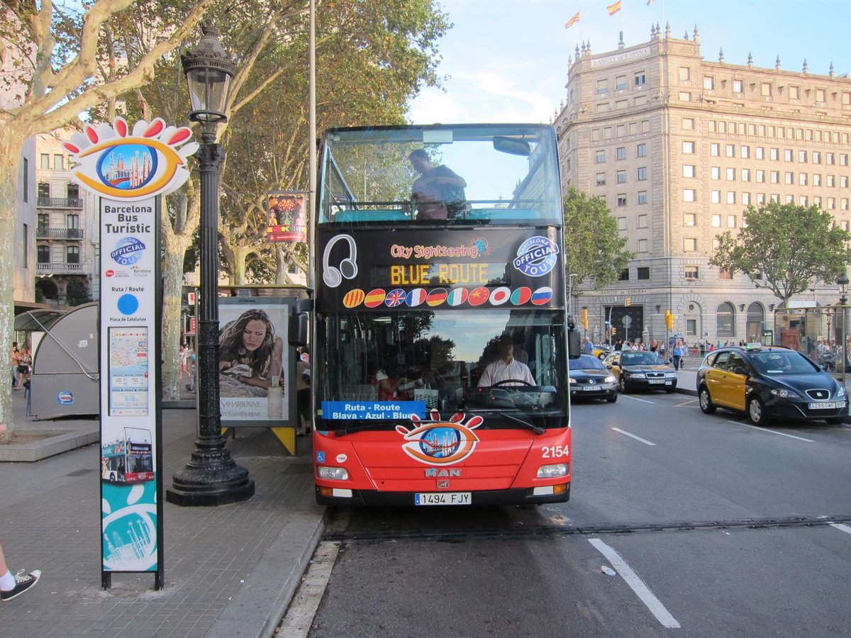 Un autobús turístico de Barcelona ha atropellado este domingo a un joven que cruzaba la calle Pla de Palau, en el distrito de Ciutat Vella, que ha tenido que ser hospitalizado.